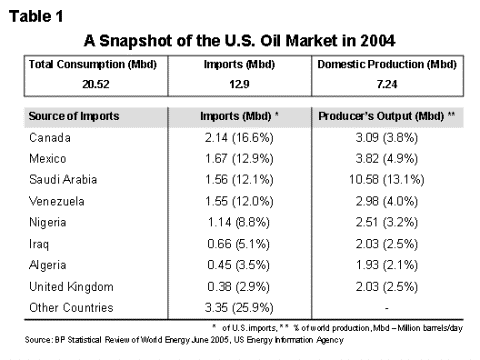 looks like closer to home in terms of the demand and supply of oil. Table 1 shows that 63% of oil consumed in the